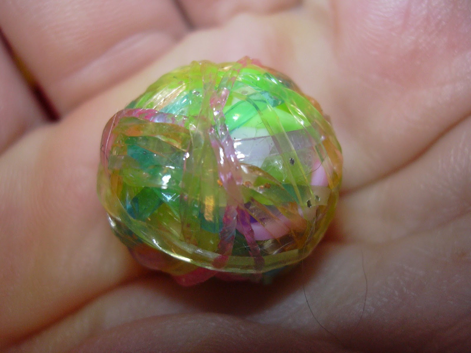 | in den Schlauch gesteckt. Die Kinder halten die Kugel durch |